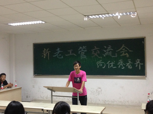 本次交流会的主题是“向优秀看齐”,在辅导员和班级同学精心准备下,交流会上优秀老生代表与新生齐聚一堂,彼此真诚交流。交流会主要涵盖了两个环节,首先由2011级七名优秀学生根据亲身经历和切身感受讲述了自己学习、生活和工作经验,深入详细地介绍了自己的处理方法;尤其学生会副主席赵金标同学发言点亮了交流会全场,他详细介绍了如何参与丰富多彩的大学活动,传授了如何处理工作和学习关系的经验,以及如何营造良好的班风、学风;希望新生都能够在本班班干部的带动下发扬团结合作,互相帮助的精神,新生们频频爆发出热烈的掌声表示赞同。最后,新同学们就自己关心的问题自由提问,问题涵盖了大学生生活、学习会遇到各方面的困惑,老生们一一做了幽默详细地回答,气氛非常热烈。